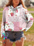 Women's Pink Christmas Tree Print Button Back Casual Knitted Shirt
