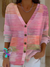 Breast Cancer Awareness Print Buttoned V-neck Cardigan Sweater