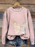 Women's Pink Christmas Tree Print Button Back Casual Knitted Shirt