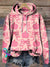 Women's Pink Christmas Tree Print Button Back Casual Knitted Shirt