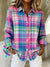 Women's Casual Retro Pink Plaid Print Casual Cotton Shirt