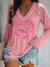 Women's Print Breast Cancer Awareness Casual V Neck Long Sleeve Tops