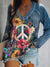 Women's Floral Peace Sign Love and Peace Print V Neck Long Sleeve Tops