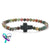 Women's Men's Unisex 4mm Natural Stone Crystal Cross Handmade Elastic Bracelet