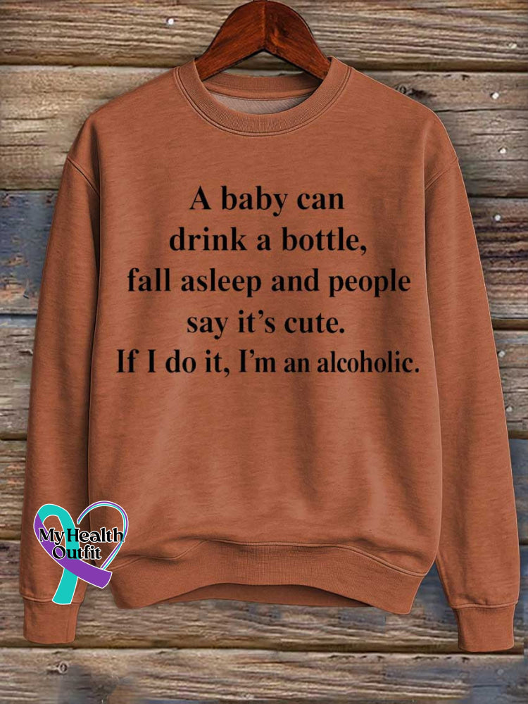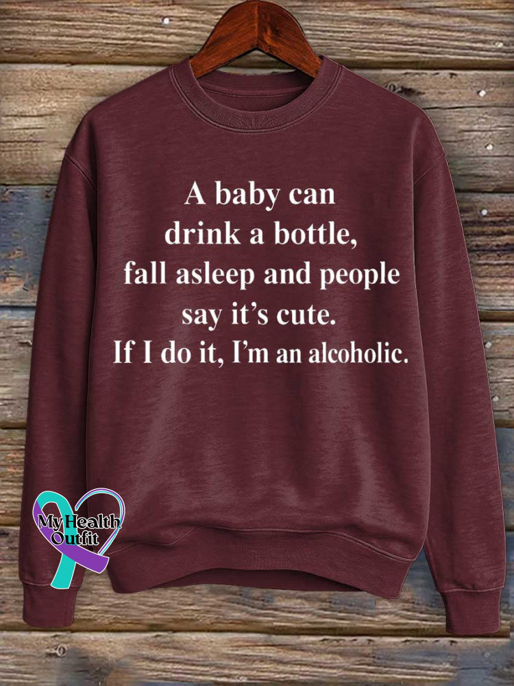 A Baby Can Drink A Bottle, Fall Asleep And People Say It's Cute. If I Do It, I'm An Alcoholic. Print Casual Sweatshirt