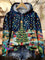 Christmas Night Stars Christmas Tree Town Print Casual Hoodie Sweatshirt