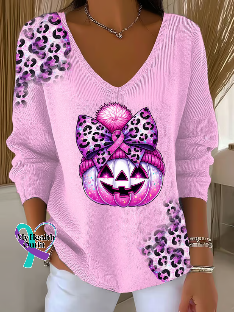 Women's Breast Cancer Awareness Pumpkin Casual Pullover Sweater