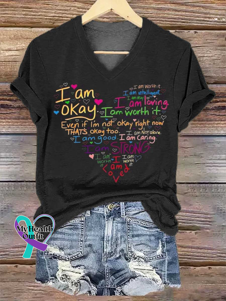 Women's I Am V-neck Casual T-Shirt