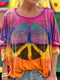 Women's Retro Hippie Peace Sign Art Print Casual 3/4 Sleeves Hollow Denim Shirt