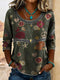 Women's Retro Pastoral Purple Floral Print Casual Top