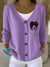 Women's Purple Alzheimer Awareness Print Art Buttoned V-neck Cardigan Sweater
