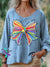 Autism Rainbow Bow Print Casual Cotton and Linen Top