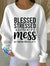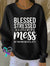 Blessed Stressed & A Little Bit Of A Mess But Trusting God In All Of It Print Casual Sweatshirt