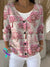 Breast Cancer Embroidered Print Buttoned V-neck Cardigan Sweater
