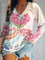 Love Is Kind Heart-shaped Floral Print Casual V-neck Long-sleeved T-shirt
