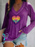 Women's Heart Rainbow Print Casual V Neck Long Sleeve Tops