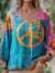 Women's Retro Floral Peace Sign Print Casual Cotton And Linen Shirt