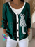 CAT Breast Cancer Awareness Print Buttoned V-neck Cardigan Sweater