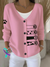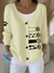 CAT Print Buttoned V-neck Cardigan Sweater