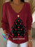 Women's Christmas Tree Pattern Art Casual Peter Pan Collar 3/4 Sleeve Sweater