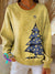 Women's Christmas Tree Pattern Art Casual Peter Pan Collar 3/4 Sleeve Sweater
