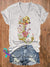 Creative Art Floral Dog Print Casual V-neck Short Sleeve T-shirt
