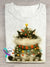Funny Christmas Cat Art Print Casual Cotton T-shirt