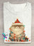 Funny Christmas Cat Art Print Casual Cotton T-shirt