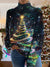 Women's Christmas Tree Pattern Art Casual Peter Pan Collar 3/4 Sleeve Sweater