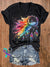 Rainbow Dreamcatcher Print Casual V-Neck Short Sleeve T-Shirt