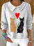 Vintage Cat Art Print Casual Peter Pan Collar 3/4 Sleeve Sweat