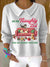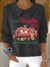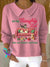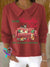 Vintage Christmas Art Print Casual Peter Pan Collar 3/4 Sleeve Sweat