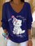 Vintage Christmas Art Print Casual V-Neck Pullover Sweater