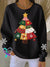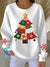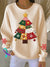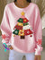 Women's Casual Pink Patchwork Christmas Tree Print Textured Sweatshirt