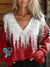 Women's Christmas Tree Art Pattern Casual V-Neck Knit Sweater