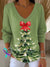 Women's Christmas Tree Art Print Casual Pullover Sweater