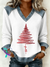 Women's Christmas Tree Pattern Art Casual Peter Pan Collar 3/4 Sleeve Sweater