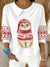 Women's Cute Christmas Cat Print Cat Lovers Casual Baby Doll Collar Top
