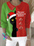 Women's Lovely Christmas Cat Art Print Casual Peter Pan Collar 3/4 Sleeve Sweater