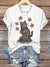 Women's Vintage Cat Autumn Art V-neck Casual T-Shirt