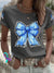 Women's Hope for Cure Diabetes Awareness Butterfly Printed Casual T-Shirt