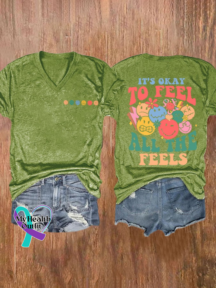 Women's It's Okay To Feel All The Feels Print Casual T-Shirt