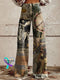 Groovy Retro Hippie Print Casual Wide Leg Pants