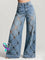 Women's Vintage Art Print Casual Cotton Denim Jeans