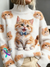 Lovely Cats Print Knit Turtleneck Pullover Sweater