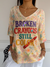 Women's BROKEN CRAYONS STILL COLOR Print Casual Cotton Short Sleeve V-neck Shirt