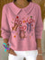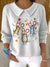 Christmas Vintage Cute Cat Art Print Casual Peter Pan Collar 3/4 Sleeve Sweat