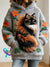 Lovely Cat Floral Pattern Cozy Plush Hoodie Sweatshirt