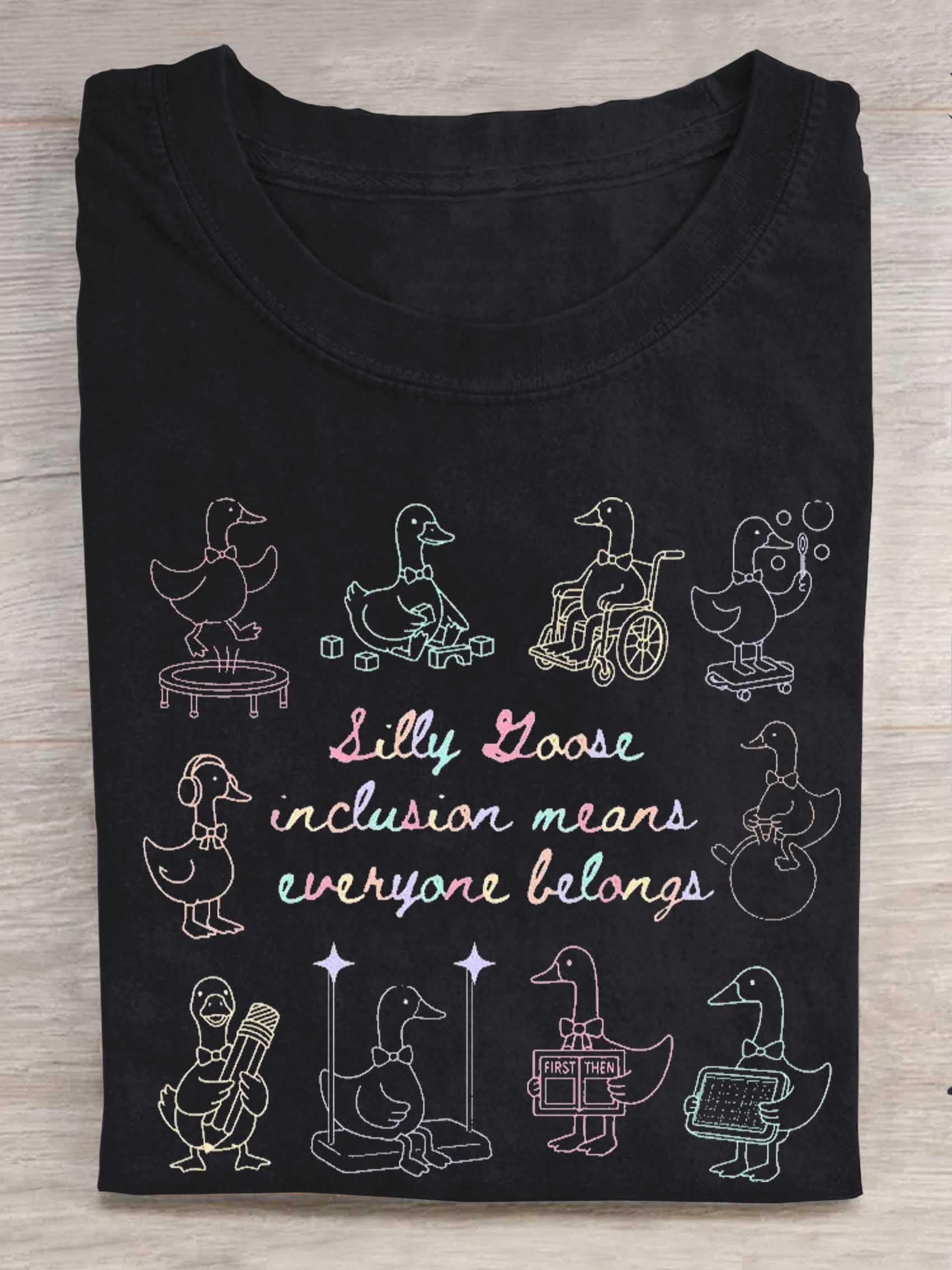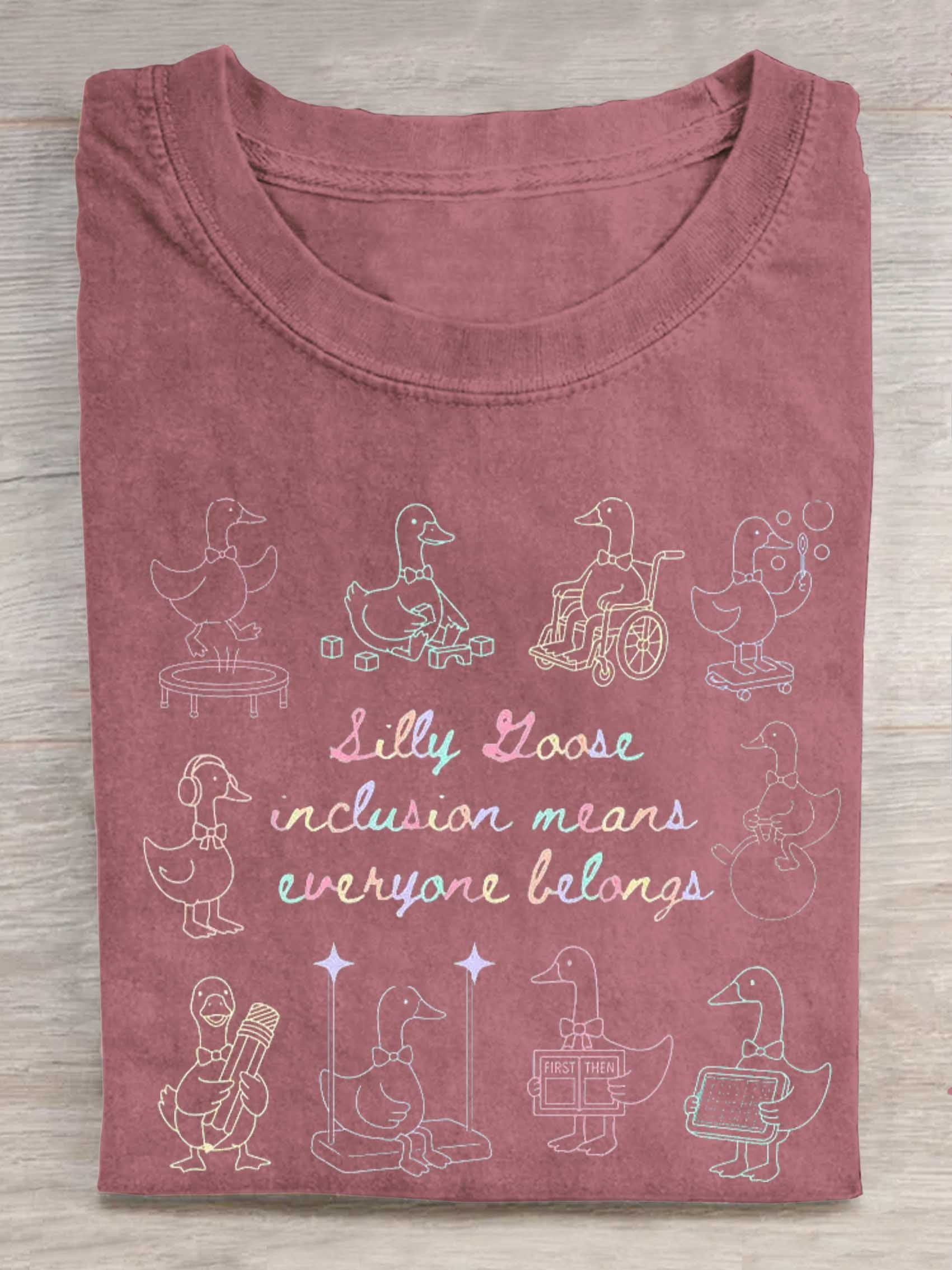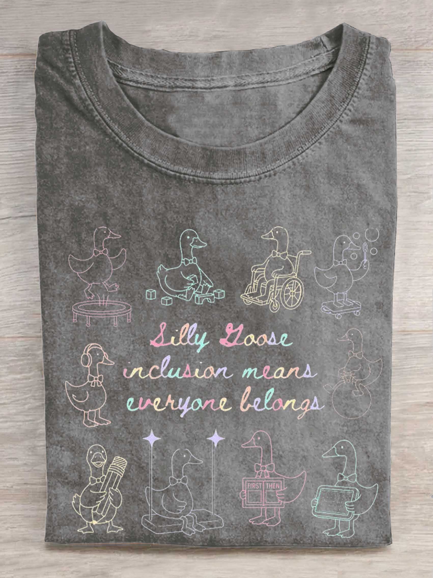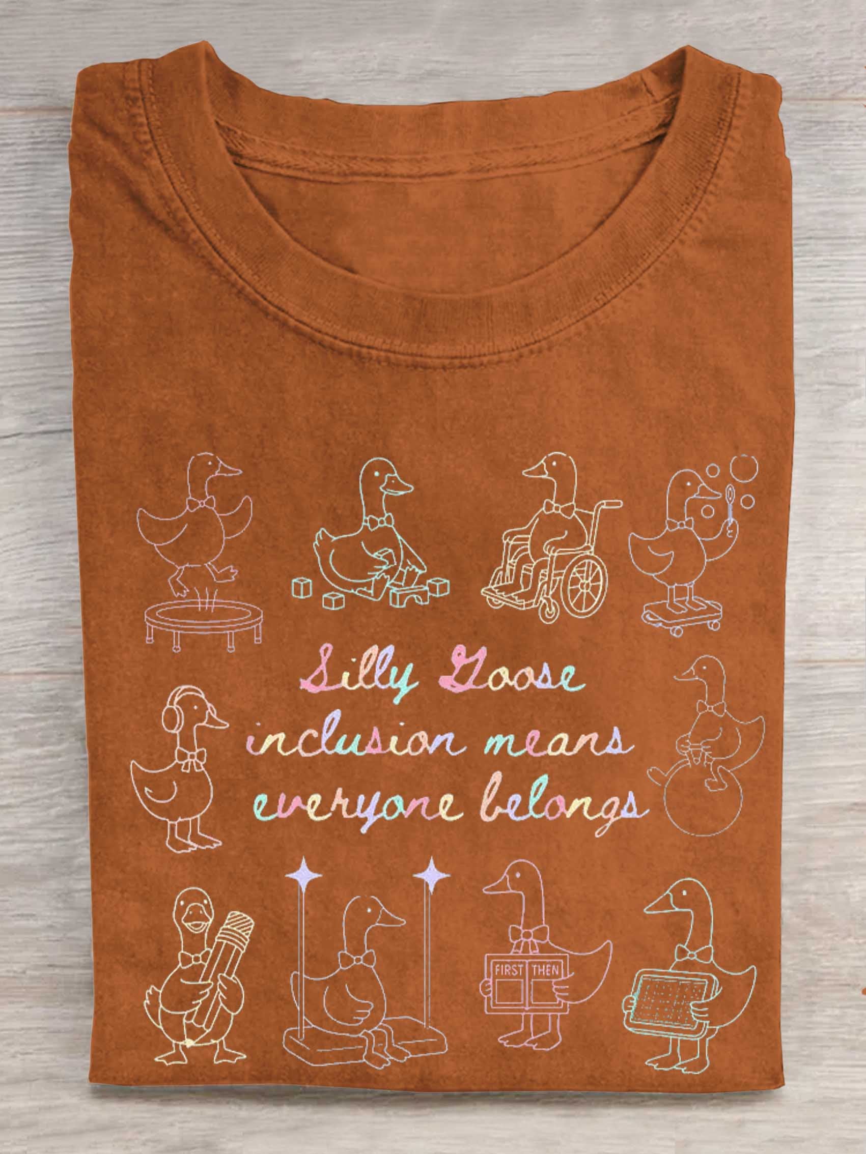 Silly Goose Inclusion Means Everyone Belongs Print T-shirt