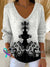 Vintage Art Print Casual V-Neck Pullover Sweater